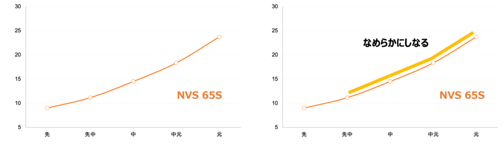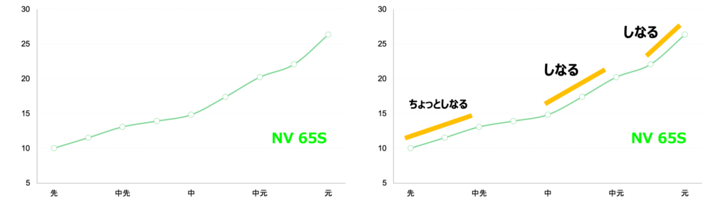 実測:ALDILA NV 65 Sの5点剛性分布